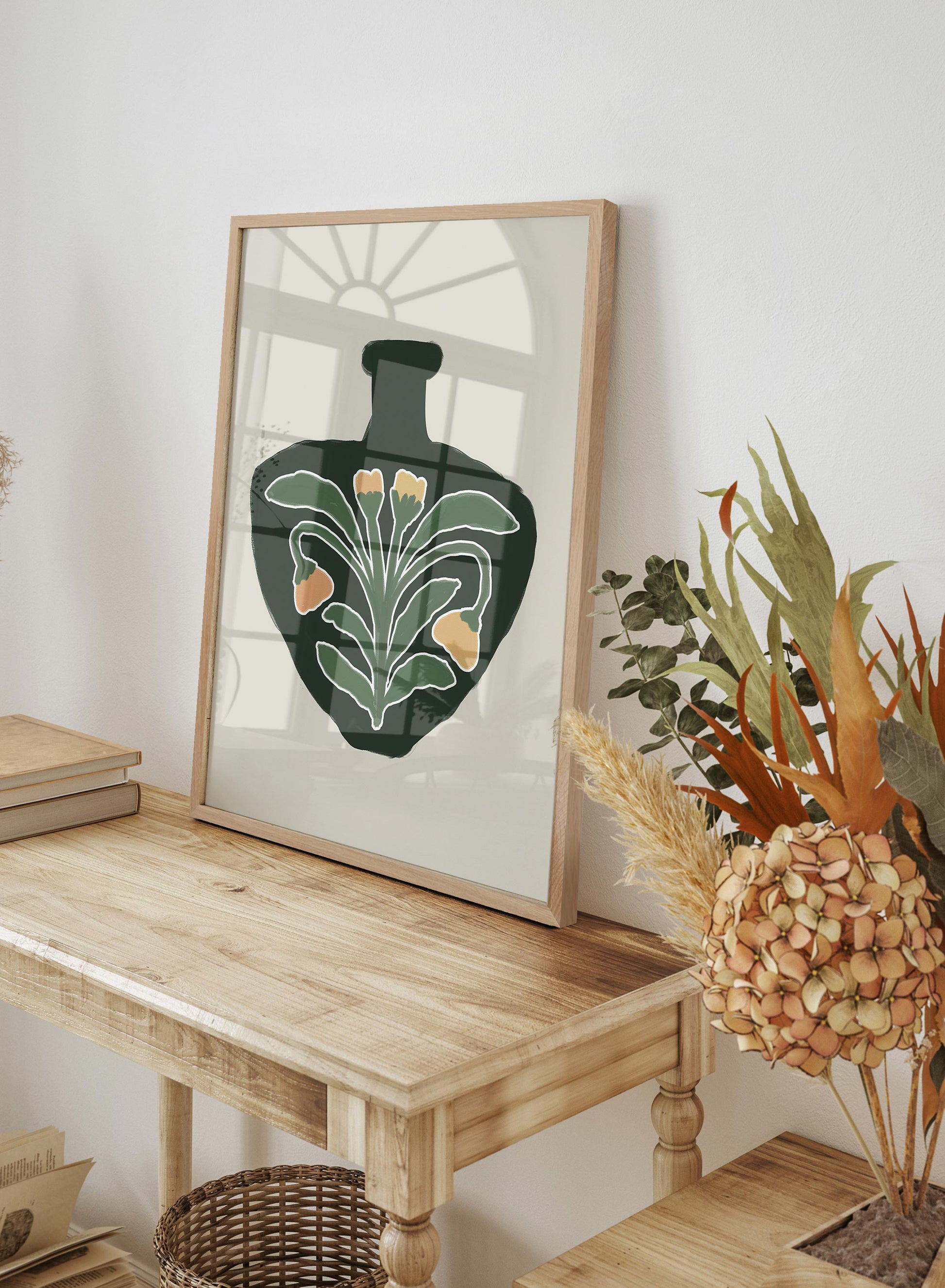 The Thalia poster holds a special place in our hearts. We love its bold green vase decorated with an abstract green and orange flower. With its beige background and textured design, this art print is a must-have for all lovers of the modern floral aesthetic. Add this poster to your gallery wall and just wait for the compliments to pour in!